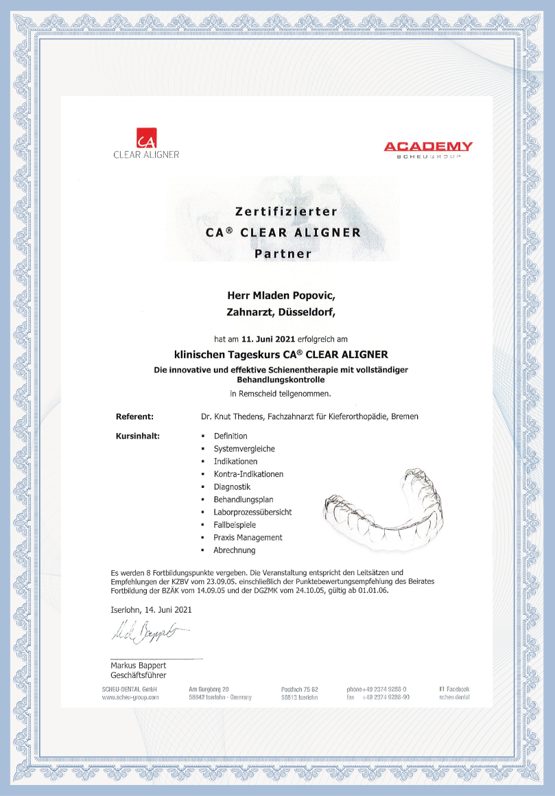 2021 – Uspješno učestvuje u kliničkom dnevnom kursu Clear Aligner, gdje intenzivno proučava inovativne i učinkovite metode ortodontske terapije s potpunom kontrolom toka liječenja.